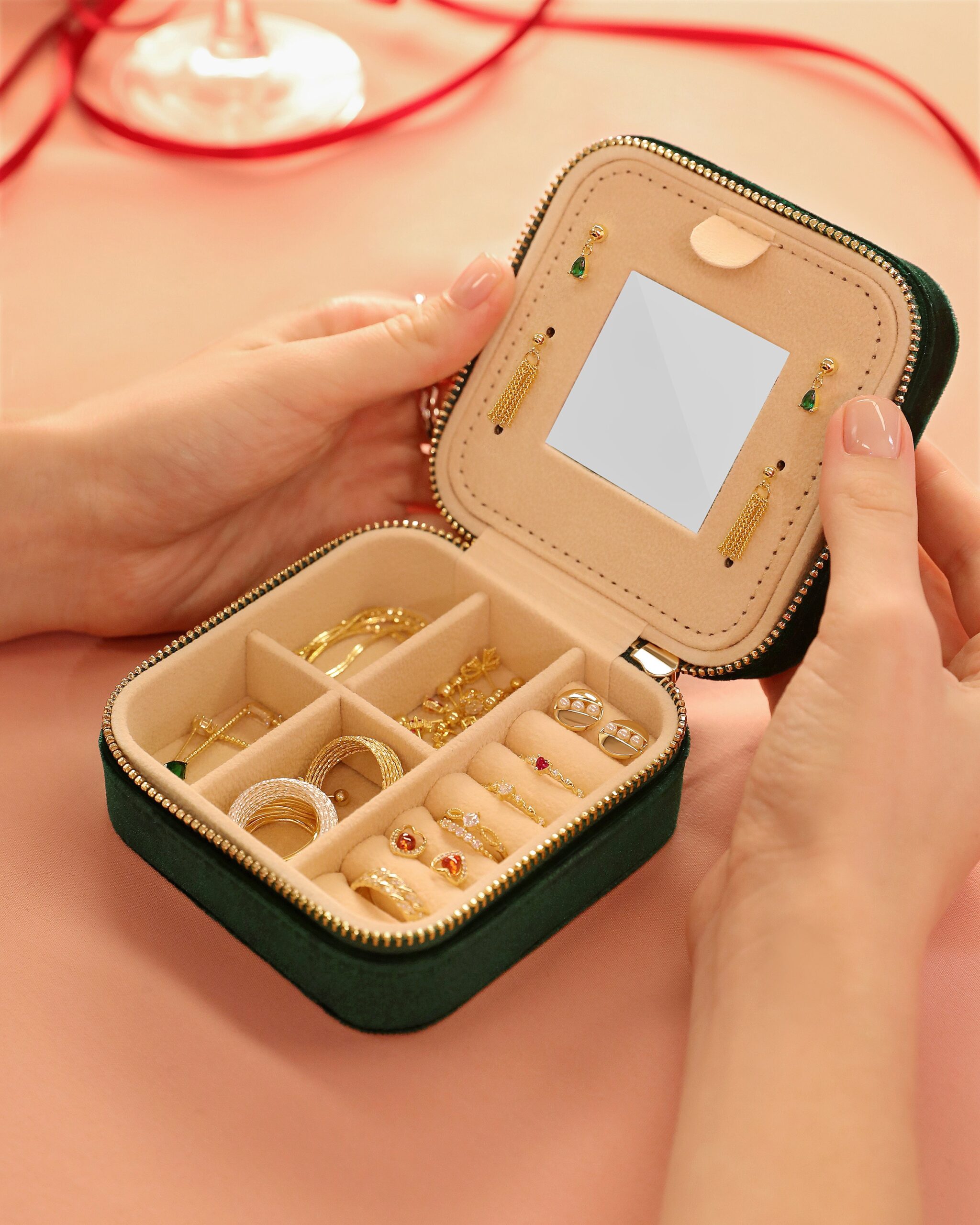 • Velvet jewelry box with soft padding