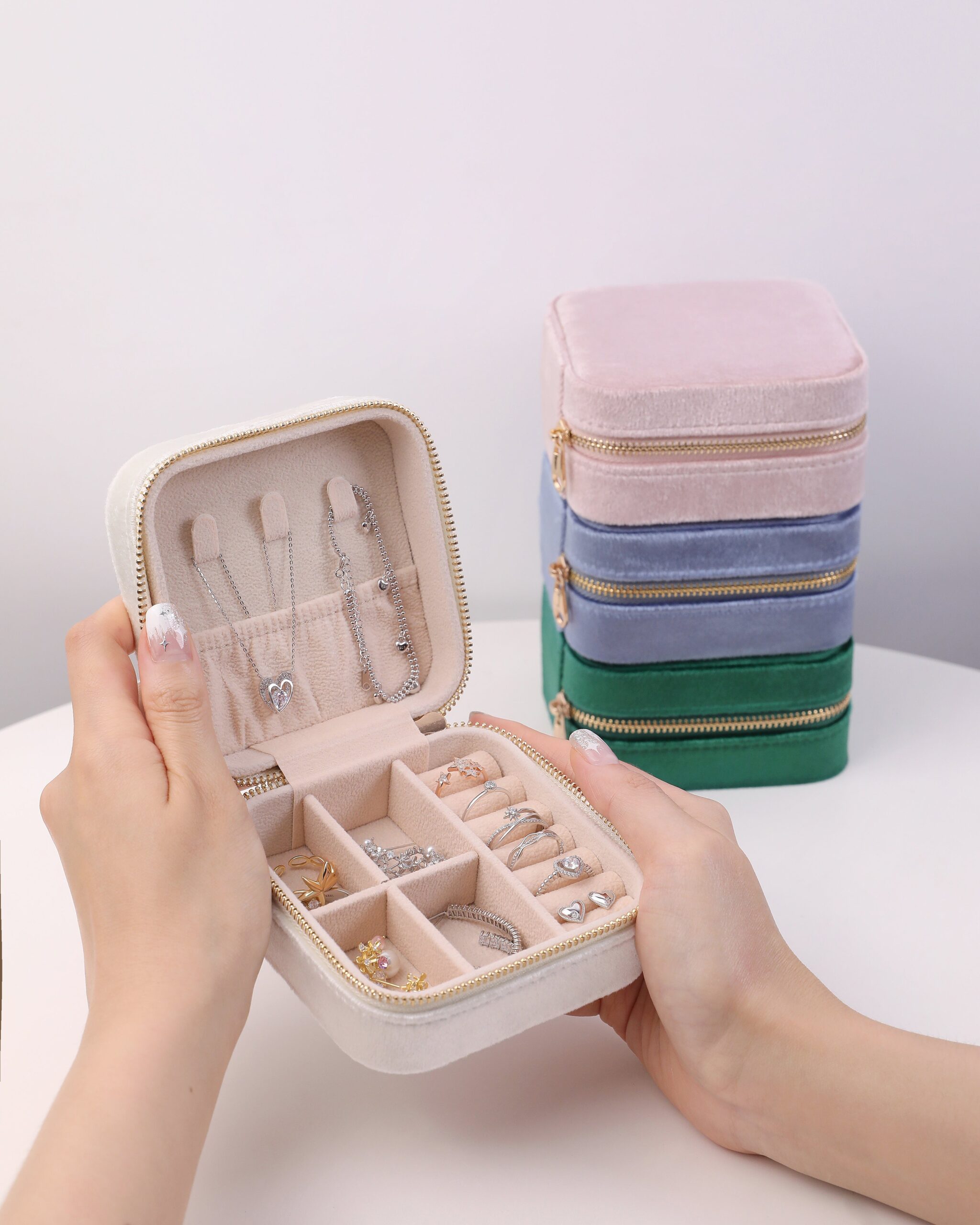 • Velvet jewelry box with soft padding